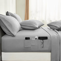 Bysure 6 Pieces Bed Sheets Set With Pockets On Side(King, Light Grey), Sweat-Wicking Breathable Sheets, 16-Inch Super Soft Hotel
