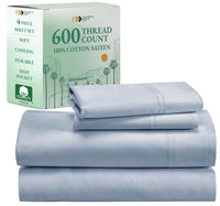 A Luxurious Sleep Begins Between The Sheets. Every 600 Thread Count 100 Percent Pure Cotton Sheet Set Delivers A Soft Feel And Durable Construction, Perfect For A New Home Or Upgrading Your Living Space. Youll Enjoy The Price Of Discount Sheets With The Quality Of Top-Tier Linens, And The Feel Of Satin Or Silk Sheets With The Breathability Of Cotton. Each Set Of Premium Cotton Sheets And Pillowcases Is Created Using Pure Cotton Yarns. Cotton Is Combed By Hand To Filter Out Impurities And Strengthen The Fabric. This Quality Is Easy To Feel When You Dive Into Cool Sheets In A Variety Of Hues Or Lay Your Head On Our Crisp Blue Pillowcases. When It Comes To Construction, Each Set Of Bed Sheets Is Stitched By A Skilled Artisan, Then Inspected By Hand. This Attention To Detail Makes Them Superior In Look And Feel To Egyptian Cotton Linens. Theyre Also Easy To Put On And Take Off, With Our Fitted Sheets Featuring Upgraded Elastic Quality. Upgrade From Lower-Quality Bedding To Premium Queen Bedsheets. Deep Pockets And A Silky Sateen Weave Are Just A Few Of The Features Youll Enjoy. Revolutionary New Dyes Offer Lush Colored Sheets. From Twin Size Sheets To Deep Pocket King Sheets, Each Set Delivers The Perfect Pop Of Color.