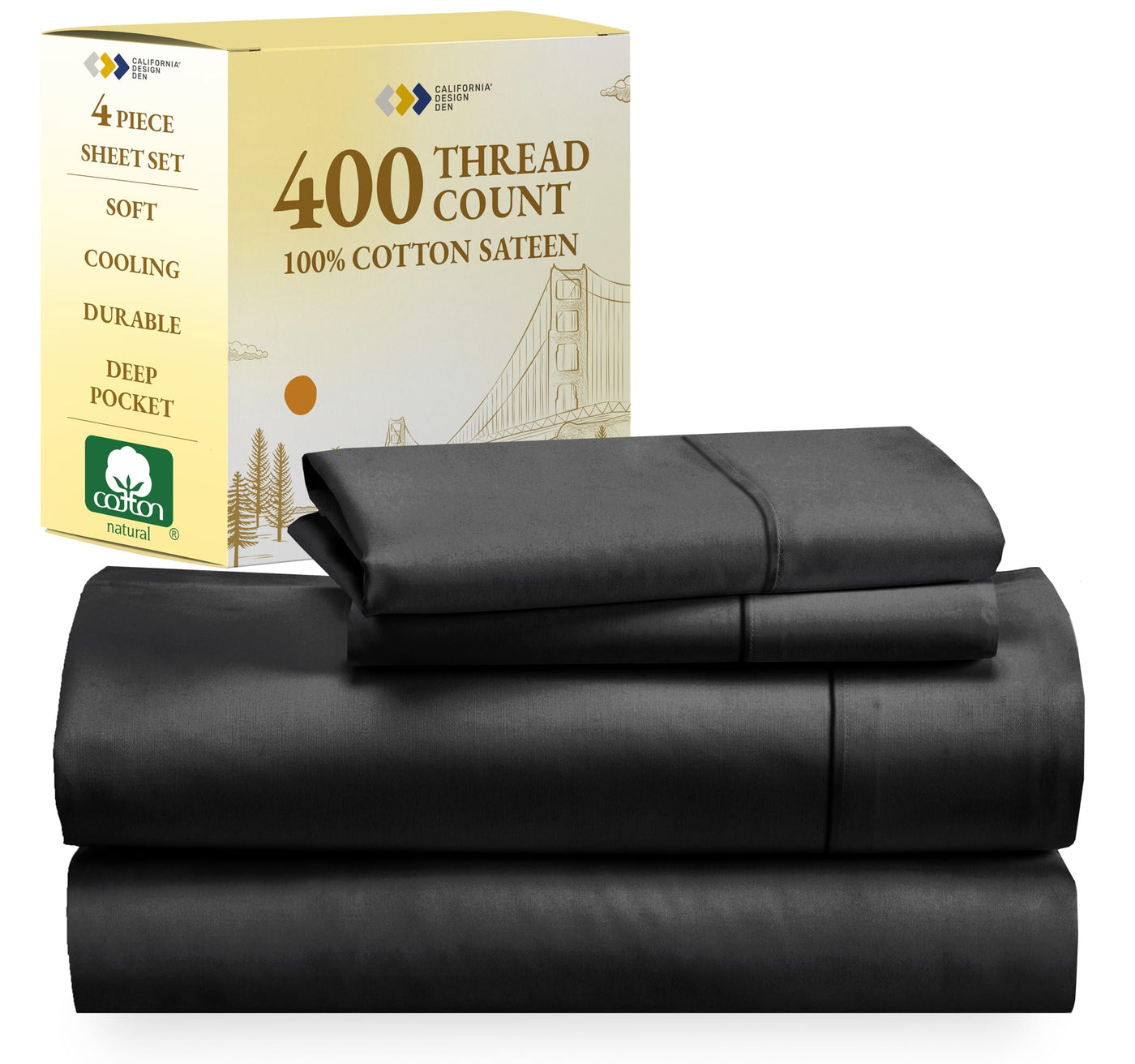 California Design Den Softest 100% Cotton Sheets, Full Size Sheet Sets, 400 Thread Count Sateen Bedding, Deep Pocket Sheets, Coo