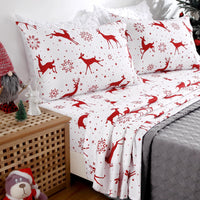 Caromio Christmas Bed Sheets King, Soft Brushed Microfiber Bed Sheet Set, 16 Inches Deep Pocket Fitted Sheet Winter Holiday Sheets Set (Red Reindeer, King)