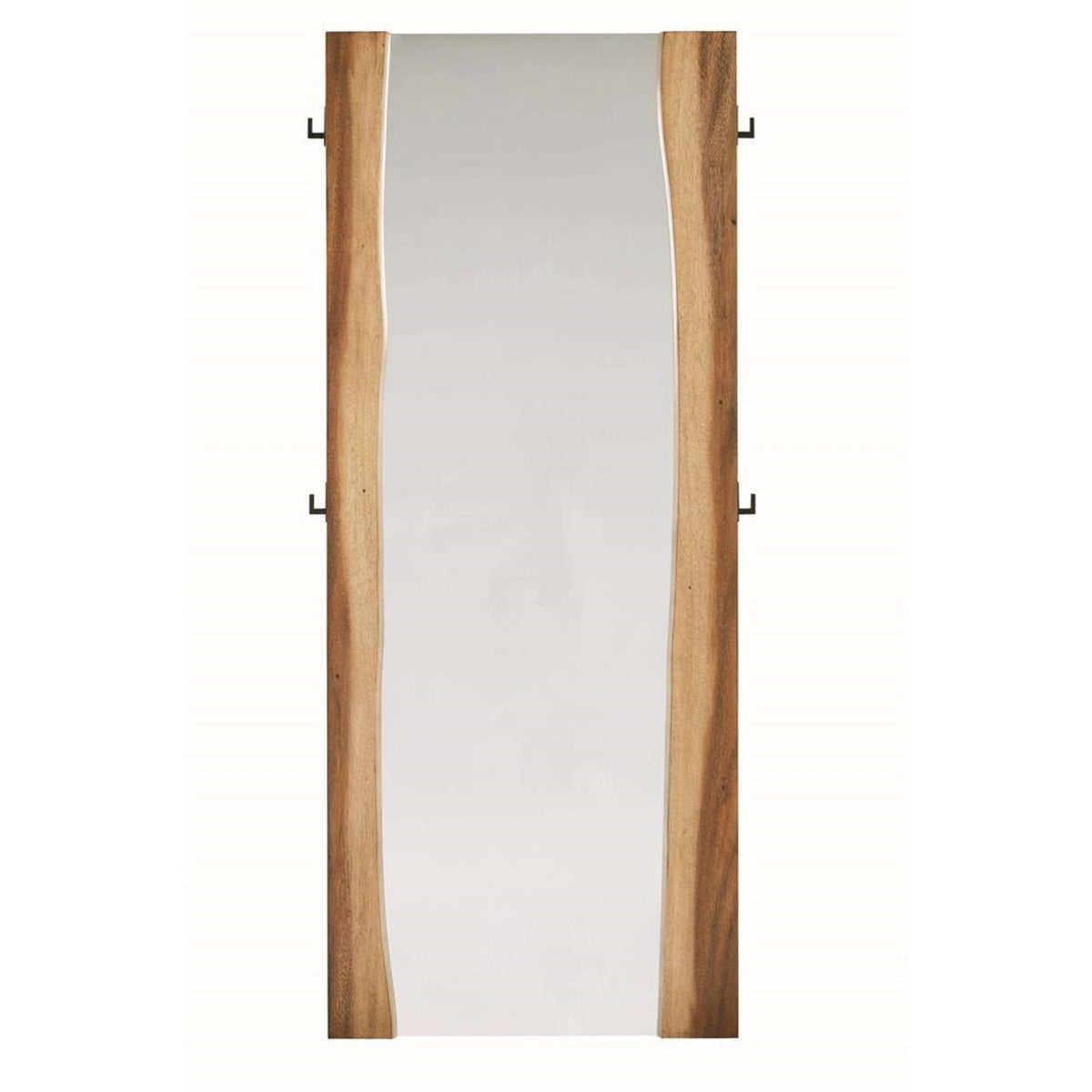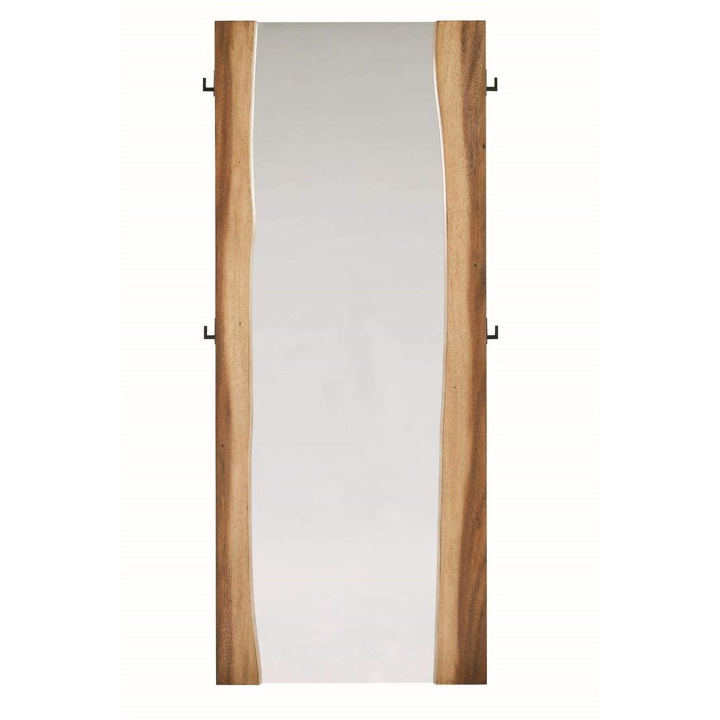 Put your best foot forward each and every day. This full-length floor mirror lets you walk out the door feeling confident from head to toe. Fashionable and functional, It features a striking wooden frame in an appealing, Smokey walnut finish. Curvy edges between the frame and mirror give it an eye-catching look. This mirror metal brackets allow you to easily affix it to any wall, making it ideal for a bedroom or walk-in closet.