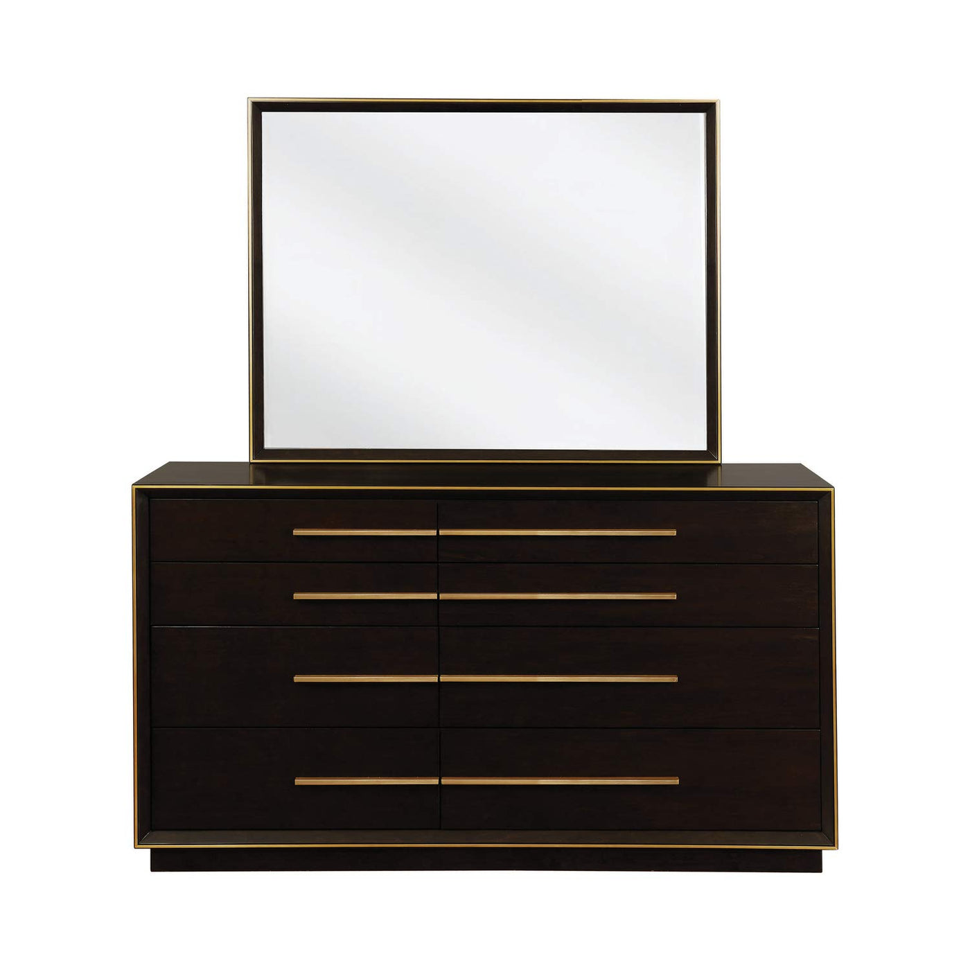 Bring a touch of retro flair to a modern bedroom with this stunning rectangular mirror. In a rich and warm smoke peppercorn finish, Its deep hues create a bold visual, perfectly accentuating its silhouette. A smooth frame and profile create a sleek and structured effect, complementing other elongated design pieces. Beautiful over a dresser in a bedroom, The mirror adds sleek and rich color. Open up your space with the contrast between bright, reflective glass and deep, straight lines.
