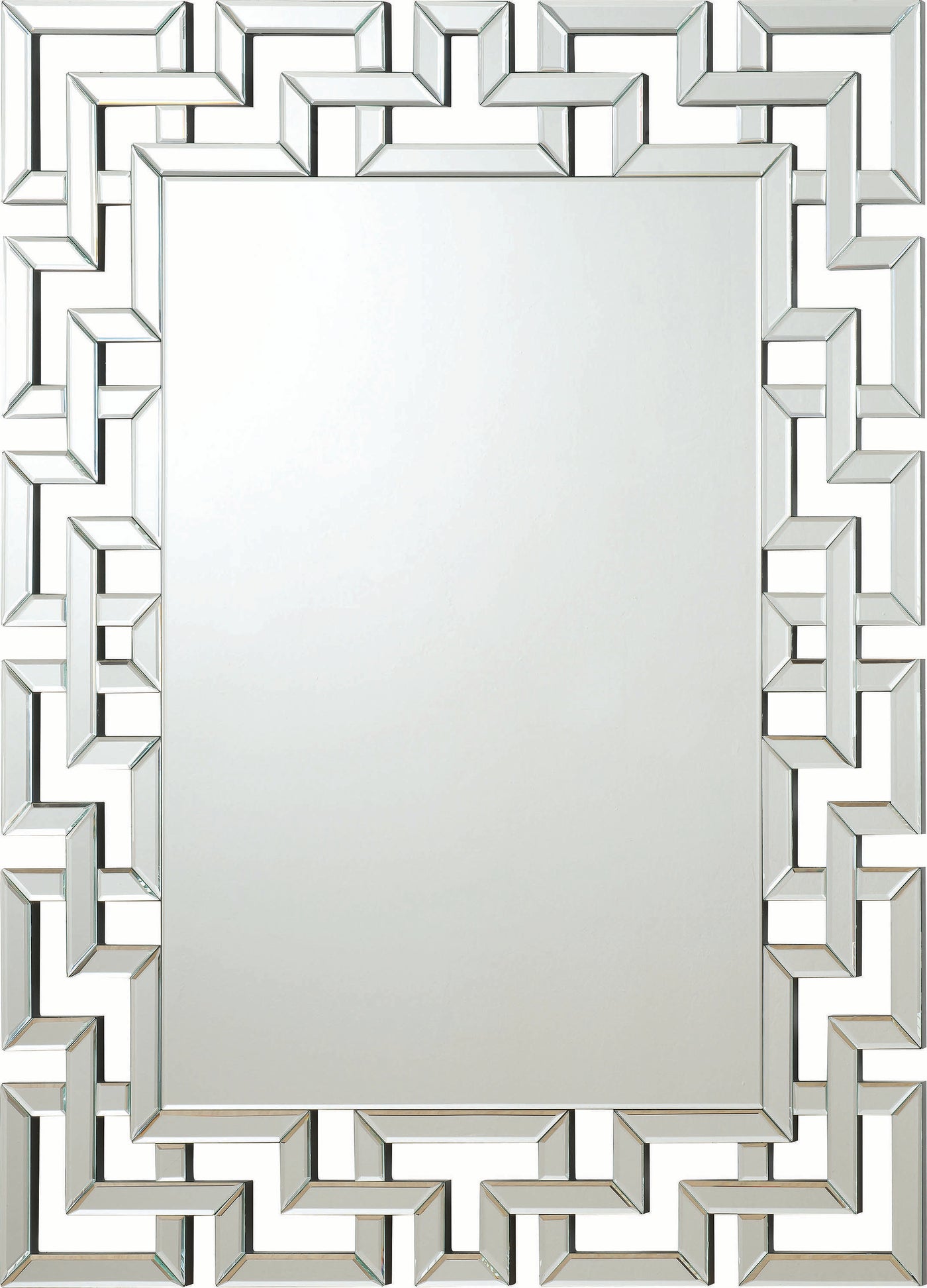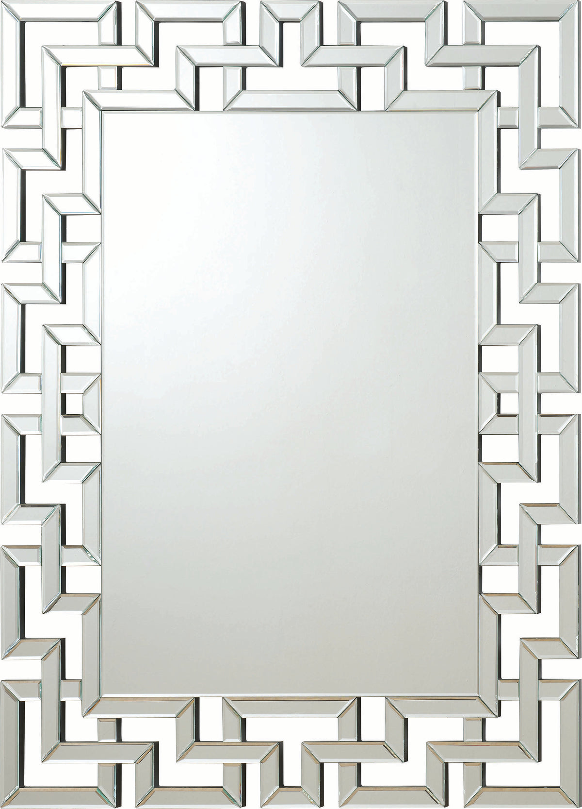 An accent piece does not have to take a back seat to the rest of the room decor. This frameless wall mirror is one such piece. It's four feet high, perfect for checking your fashion from head to toe. Yet, it's the interlocking frameless Greek key design that makes this mirror such a showpiece. The interlocking design features a mirror finish that's sure to look great in any room.