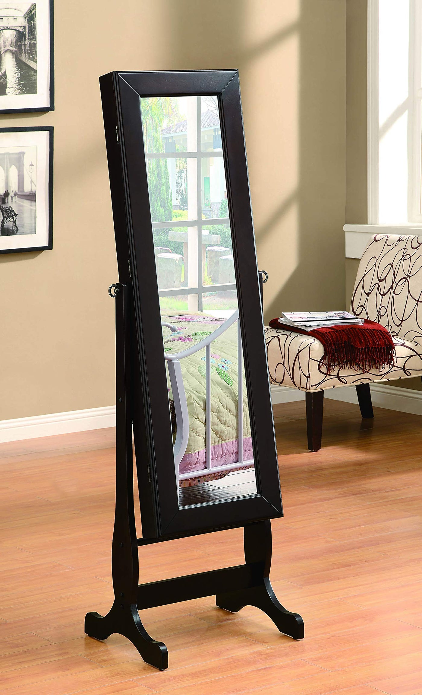 Coaster Home Furnishings Jewelry Cheval Mirror with Shelves and Drawer Cappuccino, 16.75"D x 18.5"W x 60"H, (901805)