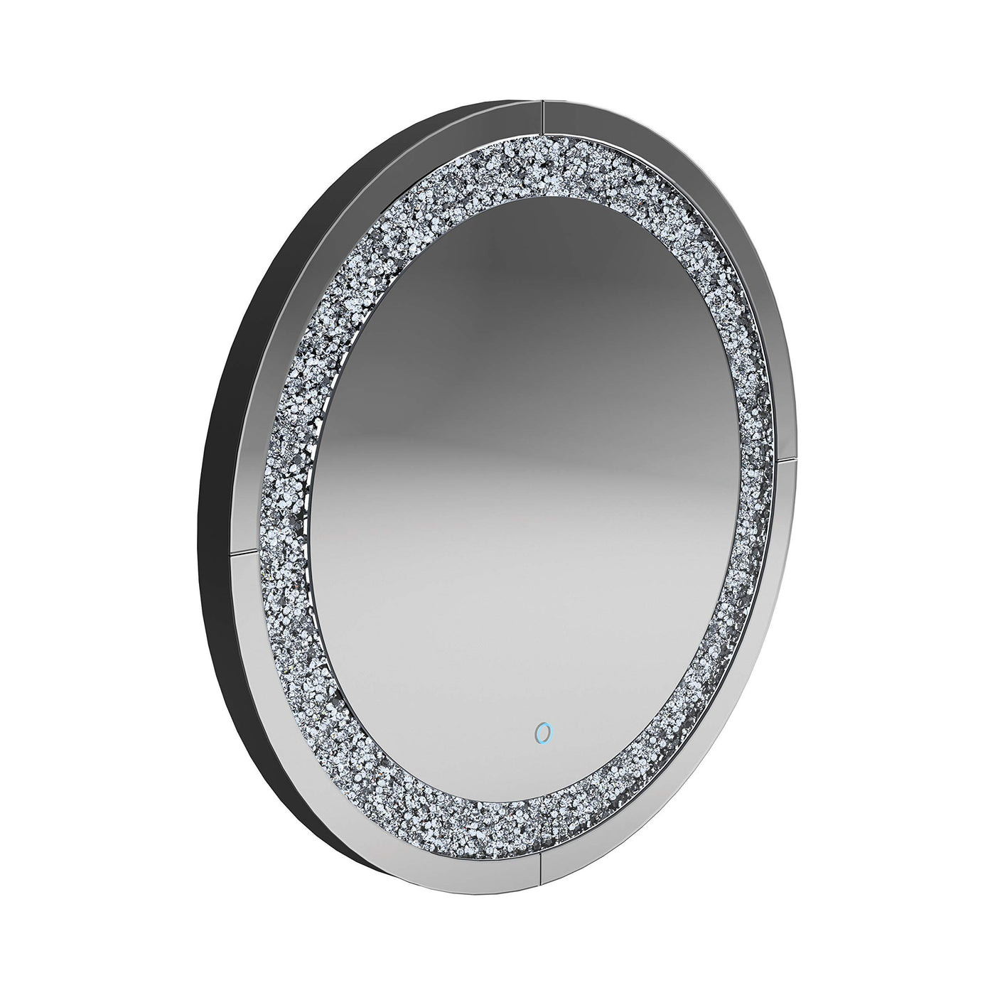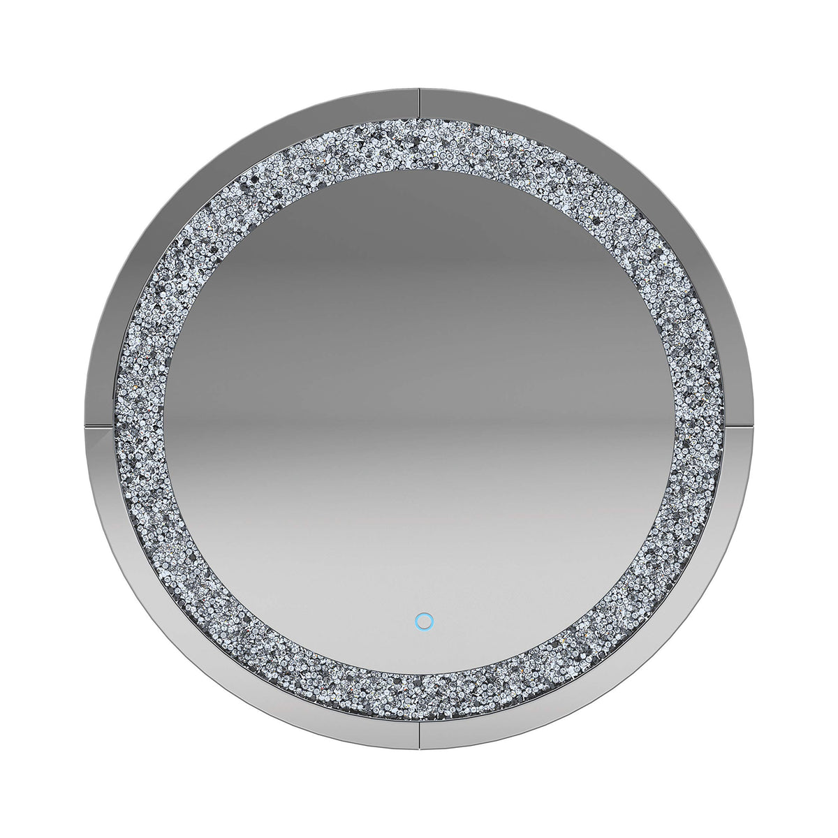 Display a contemporary aesthetic with this round wall mirror. The circular shape is less traditional, reminiscent of a porthole window. A silver frame encircles the mirror with a textured shimmer. Mount this contemporary mirror in a smaller space to instantly visually expand the room. Would also work well as a vanity mirror in a contemporary bathroom design.