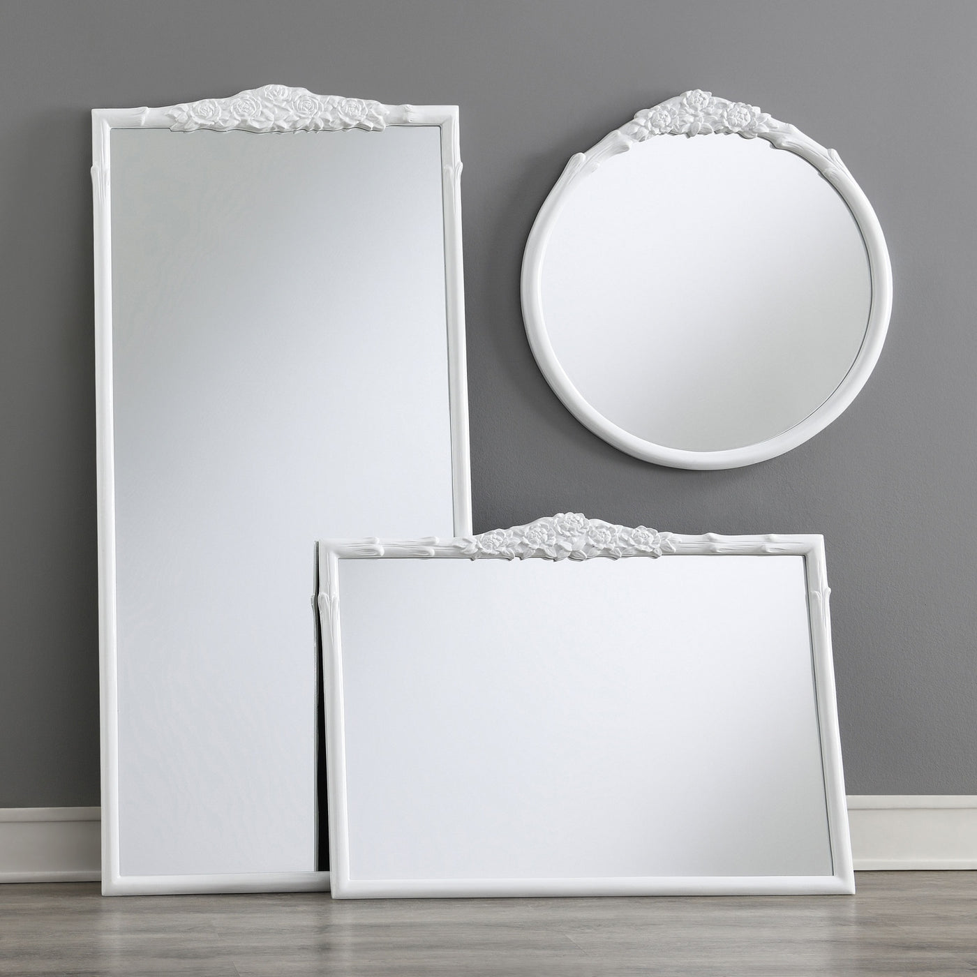 Create the illusion of length in a hall or offer reflectivity in a living area or bedroom with a tall floor mirror. A crown of carved floral embellishments graces the top of the mirror. Delicate wood details follow, adding organic, traditional flair. The rectangular mirror features flat, non-beveled glass, creating a sense of rustic simplicity that complements in any space. The full length design is ideal for dressing spaces and bedrooms, adding decorative flair and useful functionality.FeaturesCreate the illusion of length in a hall or offer reflectivity in a living area or bedroom with a tall floor mirror featuring a crown of carved floral embellishments and delicate wood details Flat, non-beveled glass adds a sense of rustic simplicity that complements any space Full length design is ideal for dressing spaces and bedrooms, adding decorative flair and useful functionality Organic, traditional flair is added with the carved floral embellishments and delicate wood details Rectangular mirror shape adds to the decorative flair of the pieceDimensions:Floor MirrorAssembled Product: 30 inches wide x 1.5 inches deep x 65 inches highAt Coaster, we are your premier source for exquisite furniture, offering diverse styles to enhance every aspect of your life. Our passion for excellence drives us to innovate, crafting budget-friendly furniture that complements your lifestyle. Explore our brands for endless design inspiration and make your living experience exceptional with thoughtfully designed, affordable pieces that inspire a life well-lived.