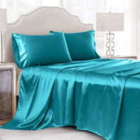 Cobedzy 4 Piece Teal Satin Sheets Queen Size, Soft Silky Bed Sheets Queen Set, Luxury Bed Sheet Set With 1 Deep Pocket Fitted Sh