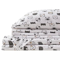 Comfort Spaces Cotton Flannel Breathable Warm, Deep Pocket Sheets With Pillow Case Bedding, Full, Grey/Pink Cats 4 Piece