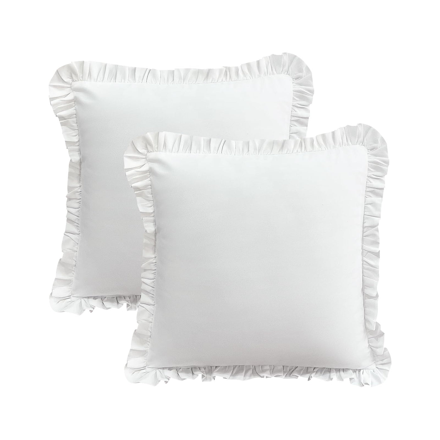 Dekeyoo Ruffled Pillow Case Set, White Euro Pillow Shams, Pack Of 2 Edge Ruffled Pillow Cover 100% Brushed Microfiber 26X26 Inch