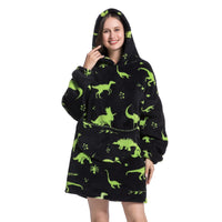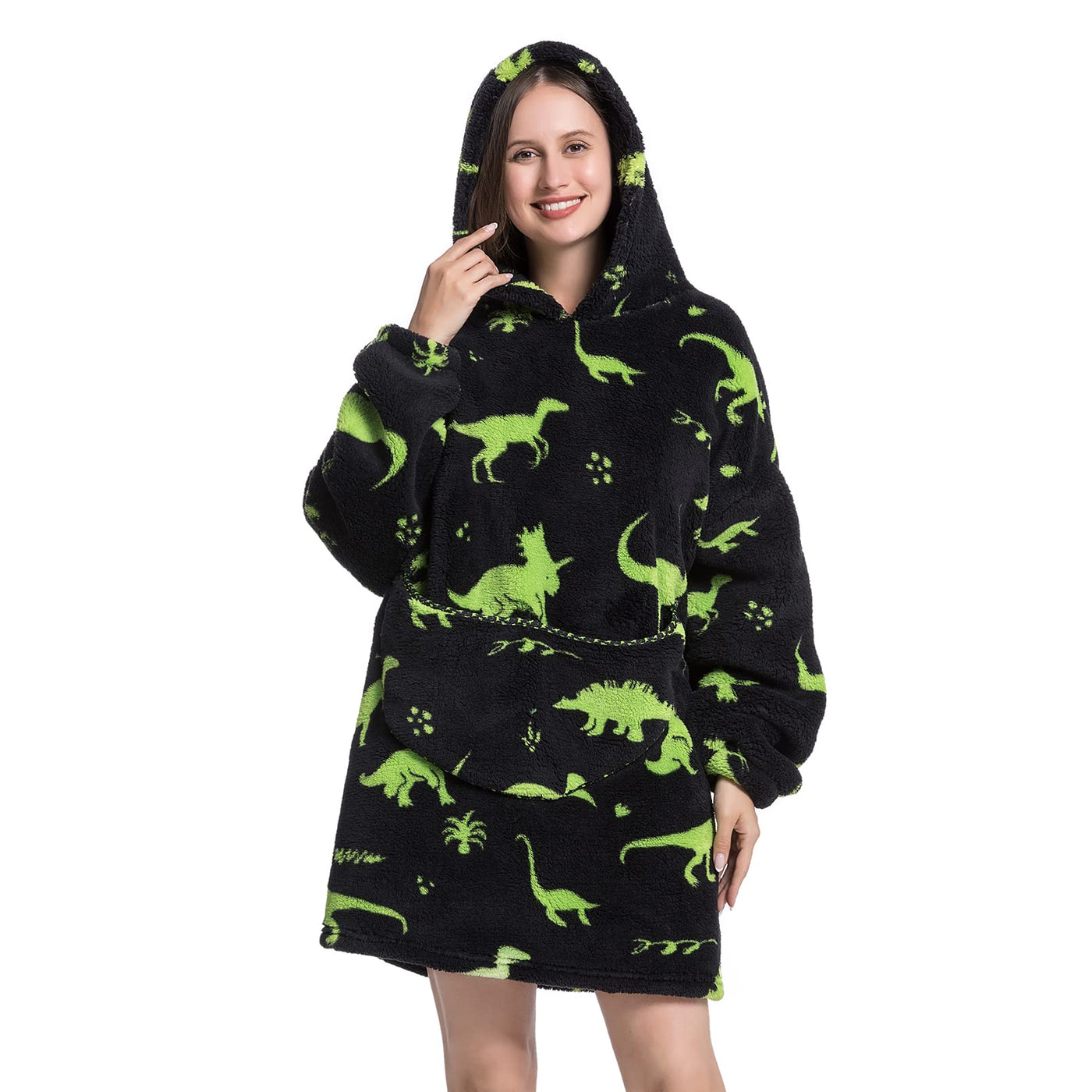 Deserthome Wearable Blanket Hoodie Oversized Hooded Blanket For Adult Women Super Soft Comfortable Warm Flannel Green Dinosaur