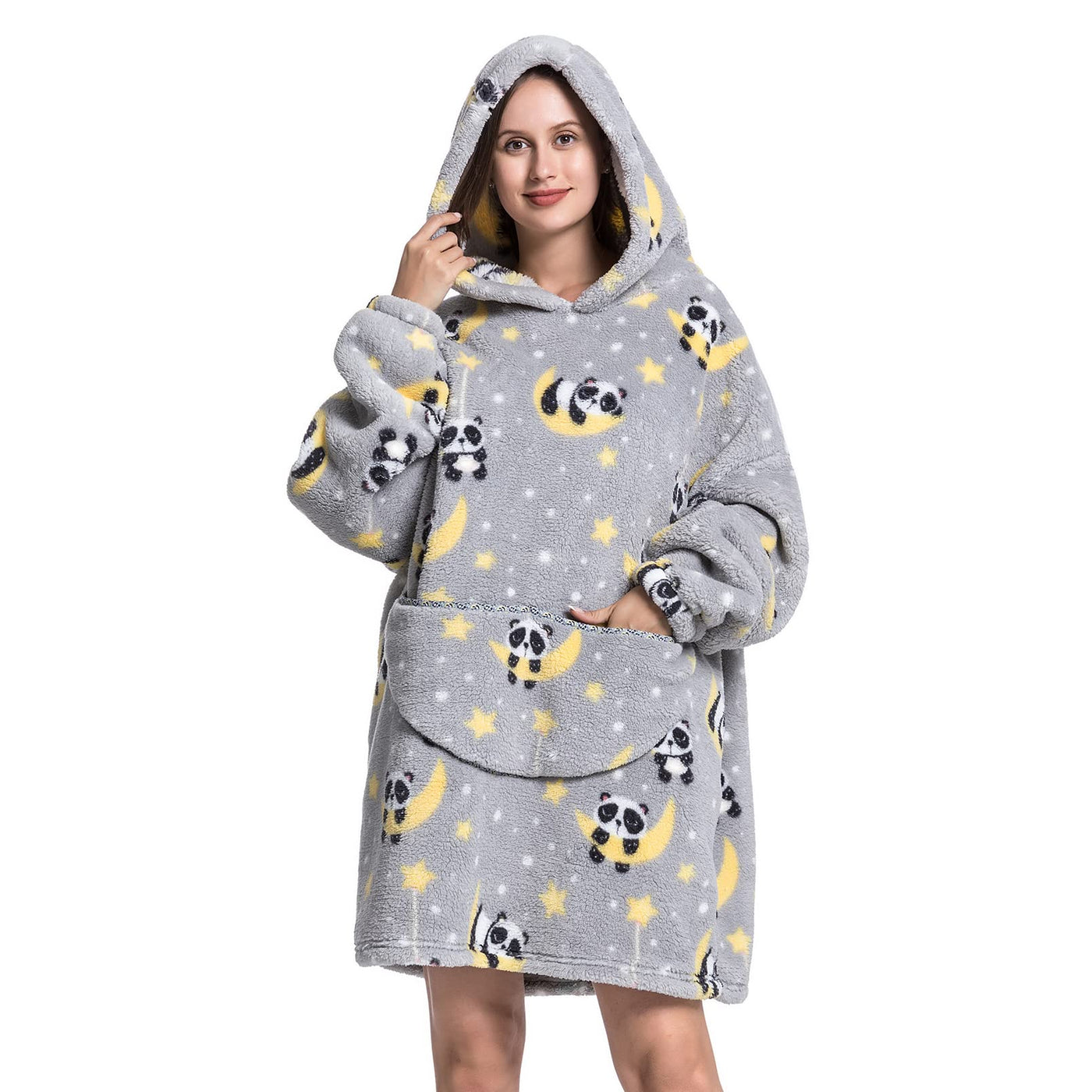 Deserthome Wearable Blanket Hoodie Oversized Hooded Blanket For Adult Women Super Soft Comfortable Warm Flannel Panda