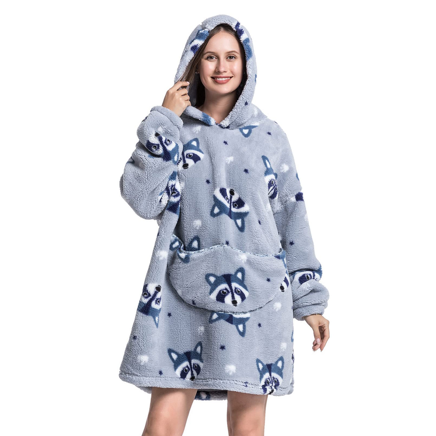 Deserthome Wearable Blanket Hoodie Oversized Hooded For Adult Women Super Soft Comfortable Warm Grey Raccoon