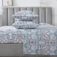 Fadfay Blue Paisley Sheets Set King Classic Boho Paisley Bedding Luxurious Bohemian Damask Paisley Bed Sheet Breathable 100% Egy