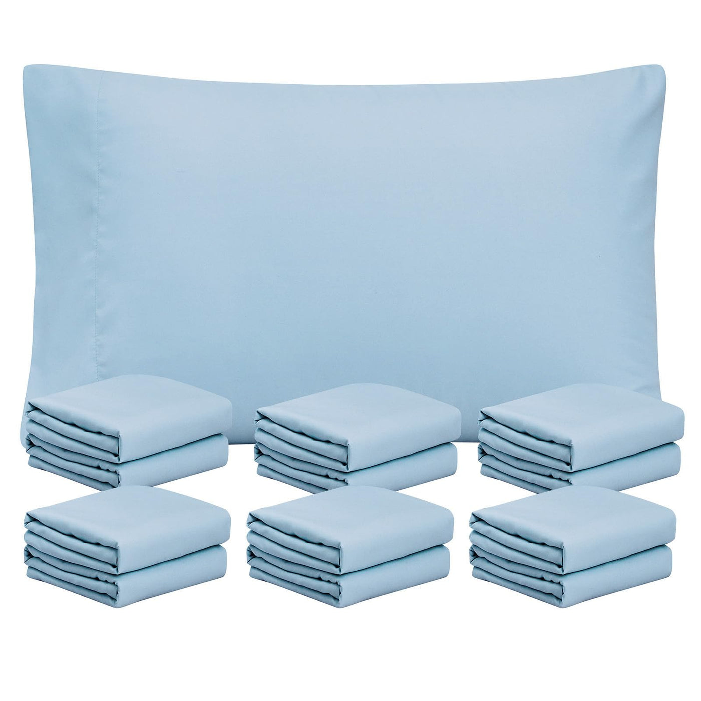 Freshculture Light Blue Pillowcases Queen Size 12 Pack - Bulk Pillowcase Set - Envelope Closure - Soft Brushed Microfiber