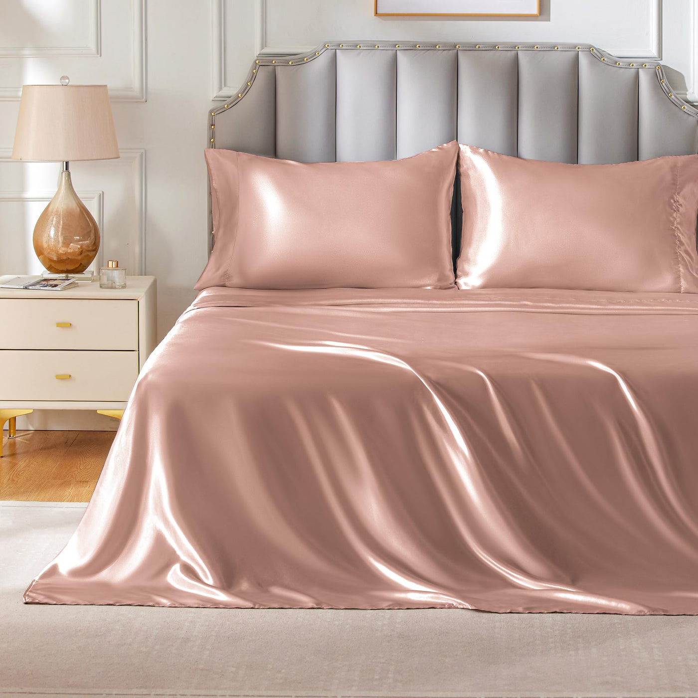 Freshculture Satin Sheets Twin Xl Size, Silky Soft Satin Bed Sheets, 3 Psc Blush Satin Sheets With Deep Pocket, Similar To Silk