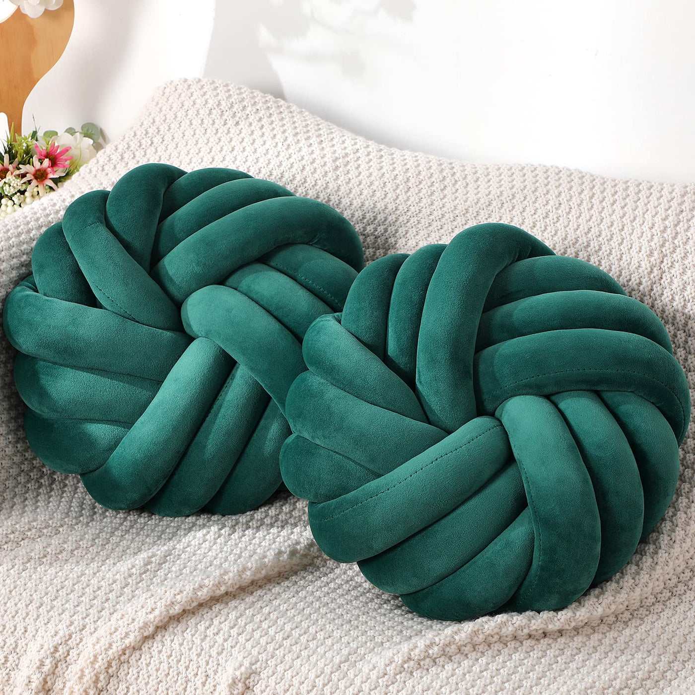 Fumete 2 Pcs Decorative Pillows 14 X 14 Inch Throw Knot Pillow For Couch Bedroom Soft Plush Sofa Pillow Ball Handmade Chair Cush