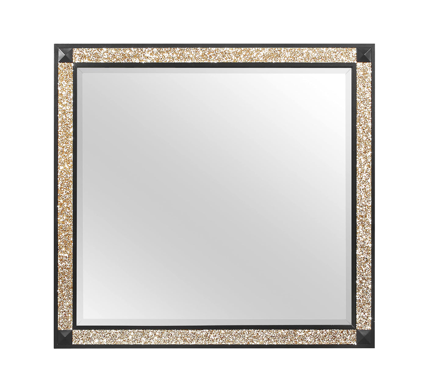 The Blake mirror combines style and elegance with many beautiful features. This dresser-mirror is outlined with gold colored crushed crystal to highlight its unique design. The large scale adds to its appeal, all the matching case pieces are all sold seperately. The black and gold hardware finish off the look.
