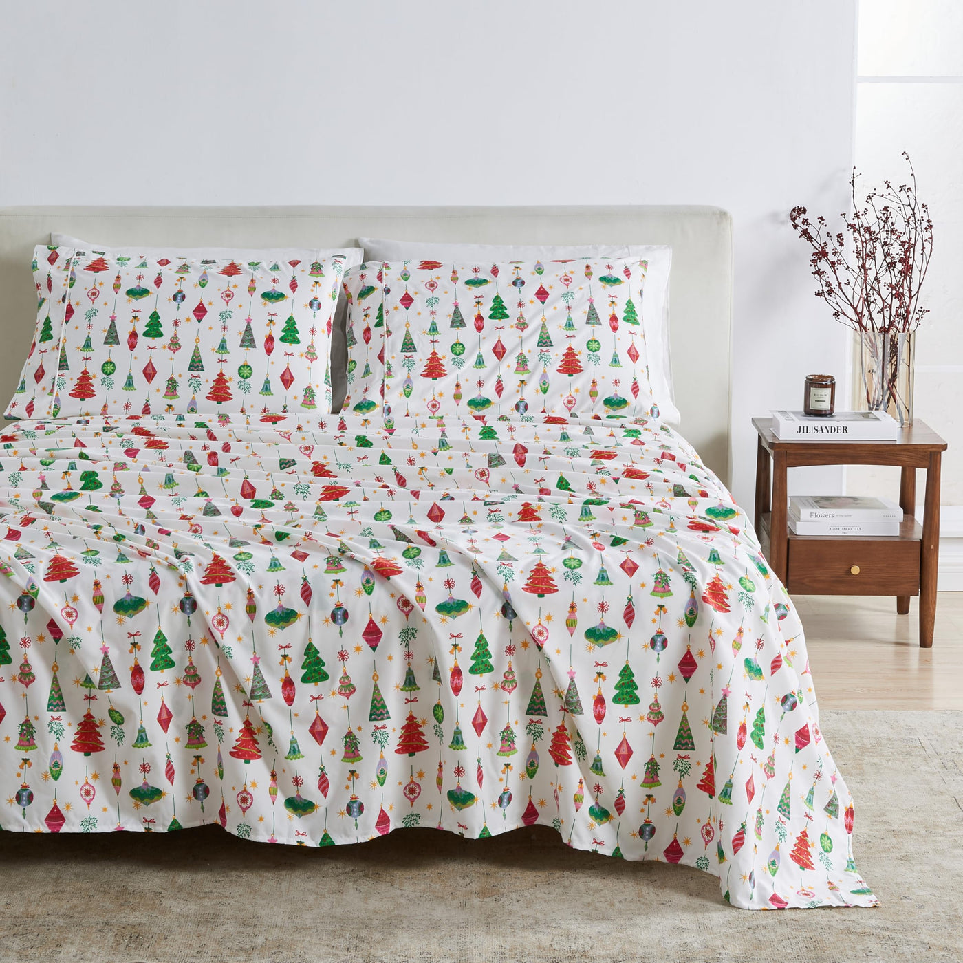Bring The Festive Spirit Into Your Bedroom With Our Holiday-Themed Microfiber Sheets! Featuring A Lively Red And Green Ornament Design, These Sheets Add A Cheerful Touch To Your Holiday Bedroom Decor. The Soft, Brushed Microfiber Feels Smooth Against Your Skin, Providing Comfort, Coziness, And Style. Perfect For Hot Sleepers, The Lightweight Microfiber Ensures A Comfortable Night'S Rest. These Eco-Friendly Sheets Are Produced Without Harmful Chemicals And In Socially Responsible Conditions, Making Them A Great Choice For Both You And The Planet.