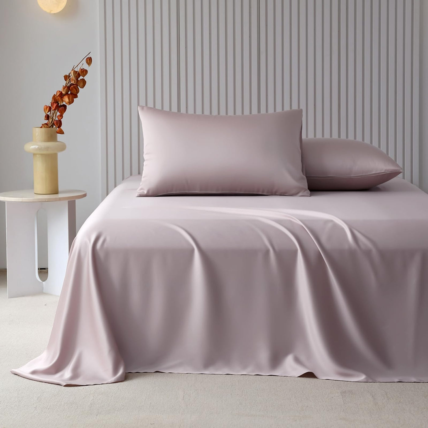 Highbuy 3 Piece Lyocell Sheets Twin Bed Sheet Set - Blush Cooling Bedding Sheet & Pillowcase Sets Twin Size - Hotel Tencel Deep