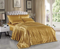 Hight Thread Count Solid Color Soft Silky Charmeuse Satin Luxury And Super Soft Bed Sheet Set (Gold, Twin)