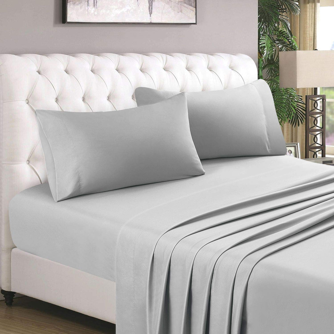 Homeideas 4 Piece Bed Sheets Set (Full, Light Gray), 1800 Bedding Soft Brushed Microfiber Luxury Sheets, Deep Pockets, Easy Care