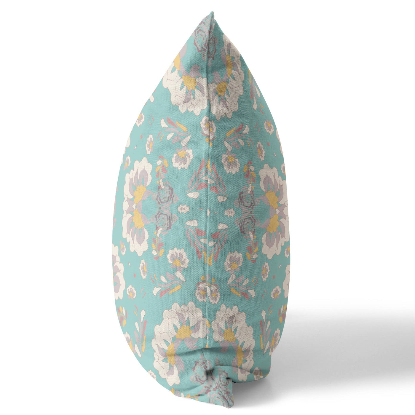 HomeRoots 16' X 16' Green and White Broadcloth Floral Throw Pillow
