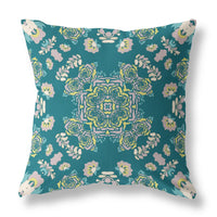 HomeRoots 16' X 16' Green and Yellow Broadcloth Floral Throw Pillow