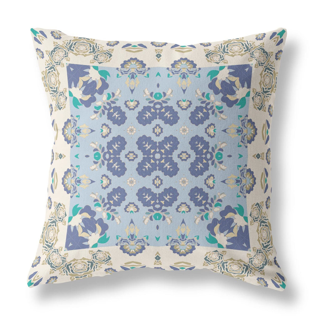 HomeRoots 16' X 16' Off White and Blue Broadcloth Floral Throw Pillow