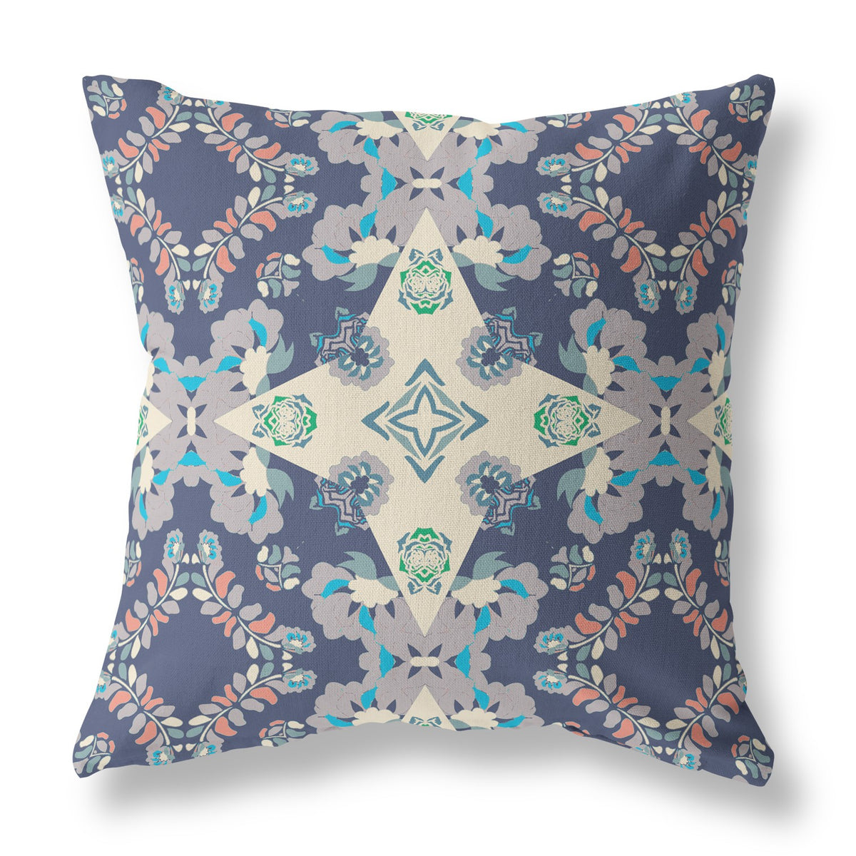 HomeRoots 18' X 18' Blue and Off White Broadcloth Floral Throw Pillow