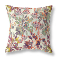 HomeRoots 18' X 18' Green, Red and Yellow Broadcloth Floral Throw Pillow
