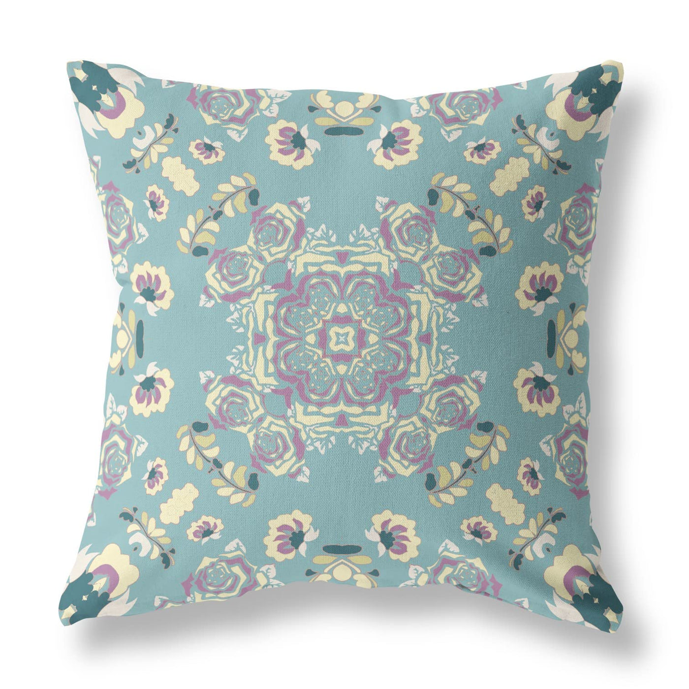 HomeRoots 18' X 18' Light Green and Yellow Broadcloth Floral Throw Pillow