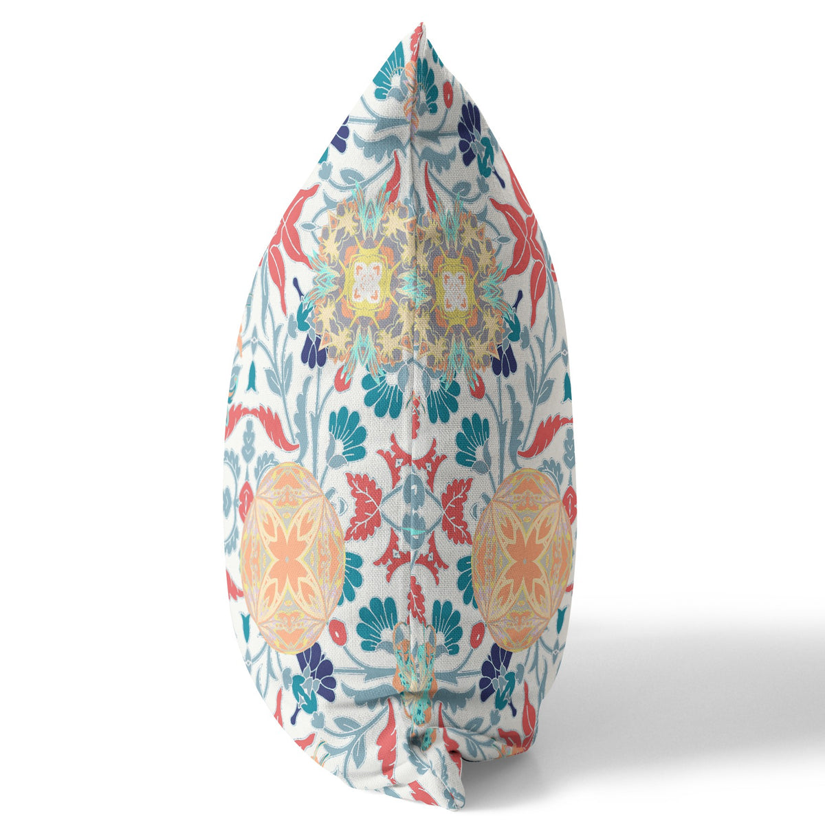 HomeRoots 20' X 20' White and Red Broadcloth Floral Throw Pillow