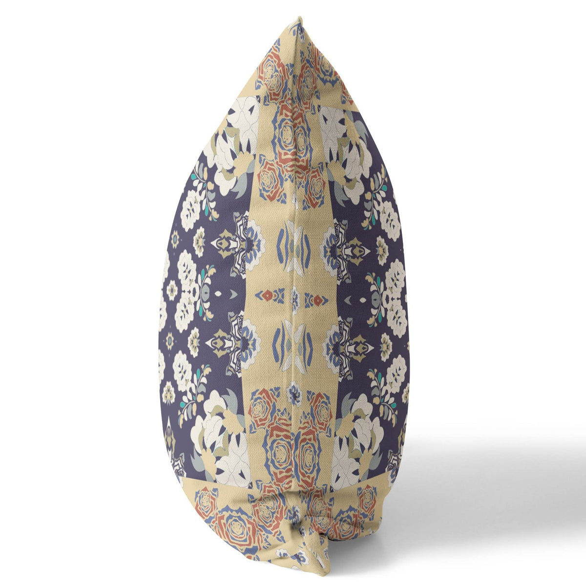 HomeRoots 20' X 20' Yellow and Navy Broadcloth Floral Throw Pillow