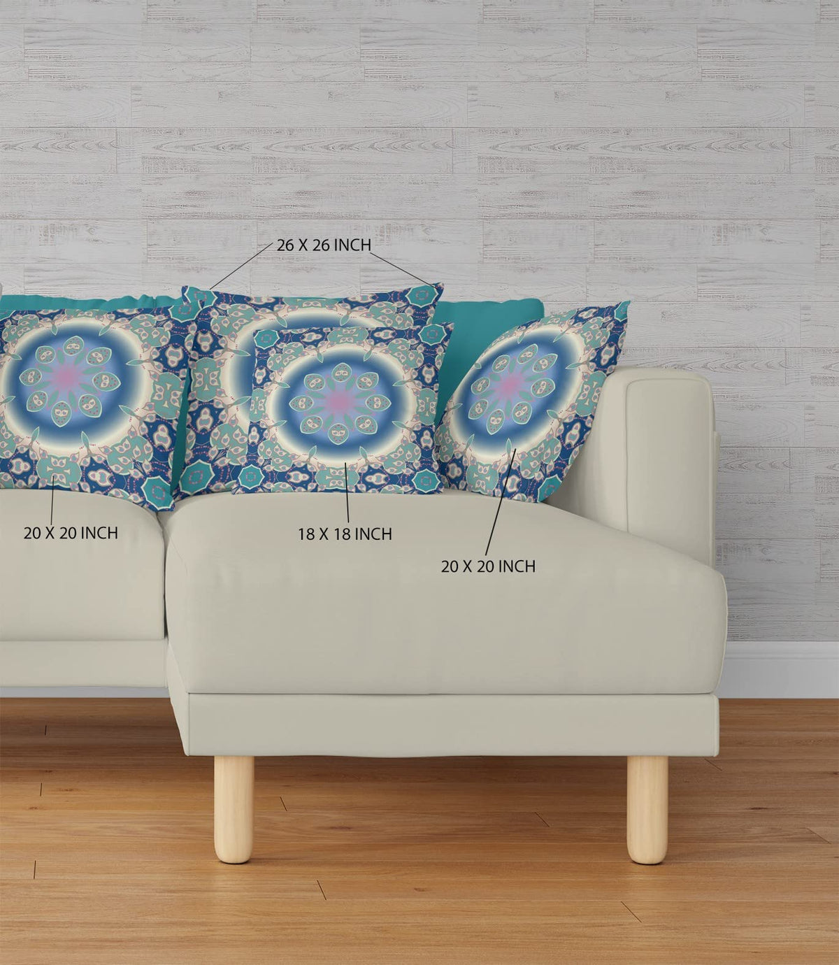 This blue and turquoise colored piece represents quality construction, expertly made from high quality broadcloth. Ideal to use alone or mix with other decorations for the perfect look. A great decorative accessory for your favorite chair, to accent your sofa or to use as part of your bedding ensemble. 5'H x 26'W x 26'D