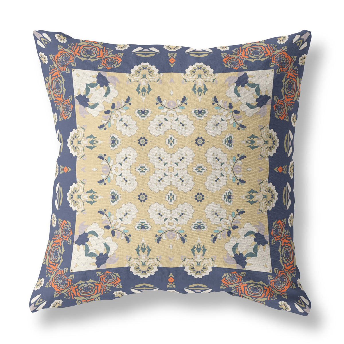 HomeRoots 26' X 26' Blue Yellow Broadcloth Floral Throw Pillow