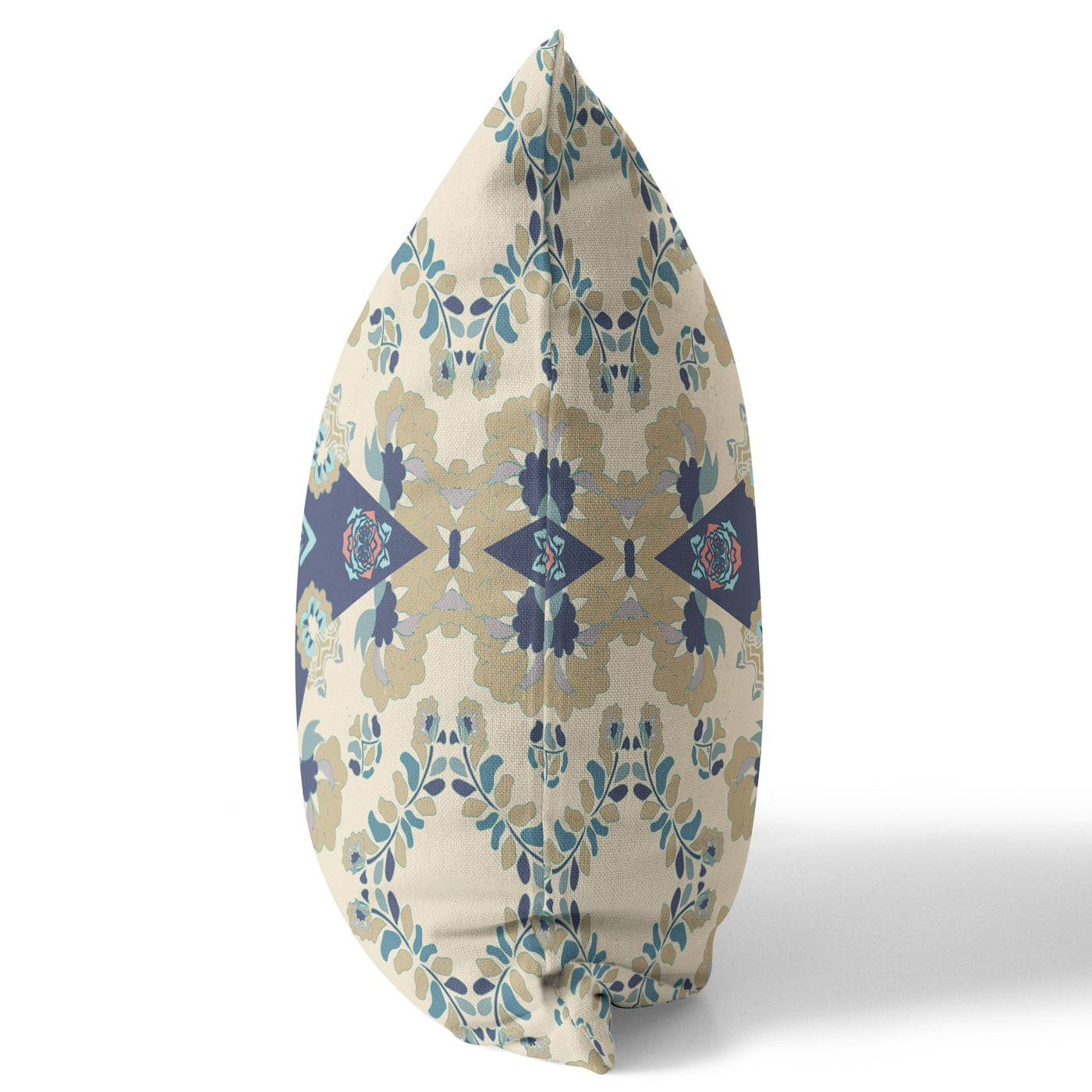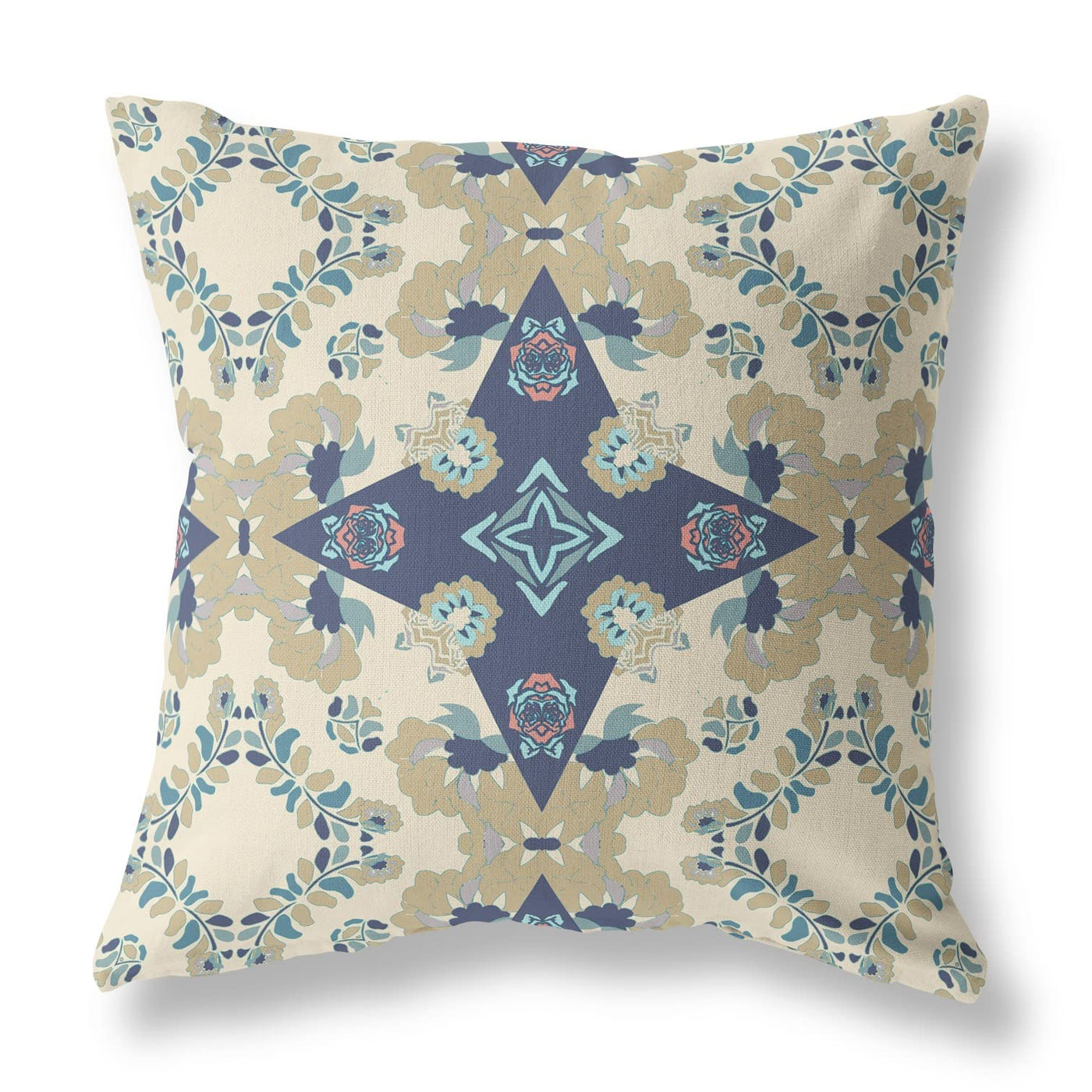 HomeRoots 26' X 26' Cream and Blue Broadcloth Floral Throw Pillow