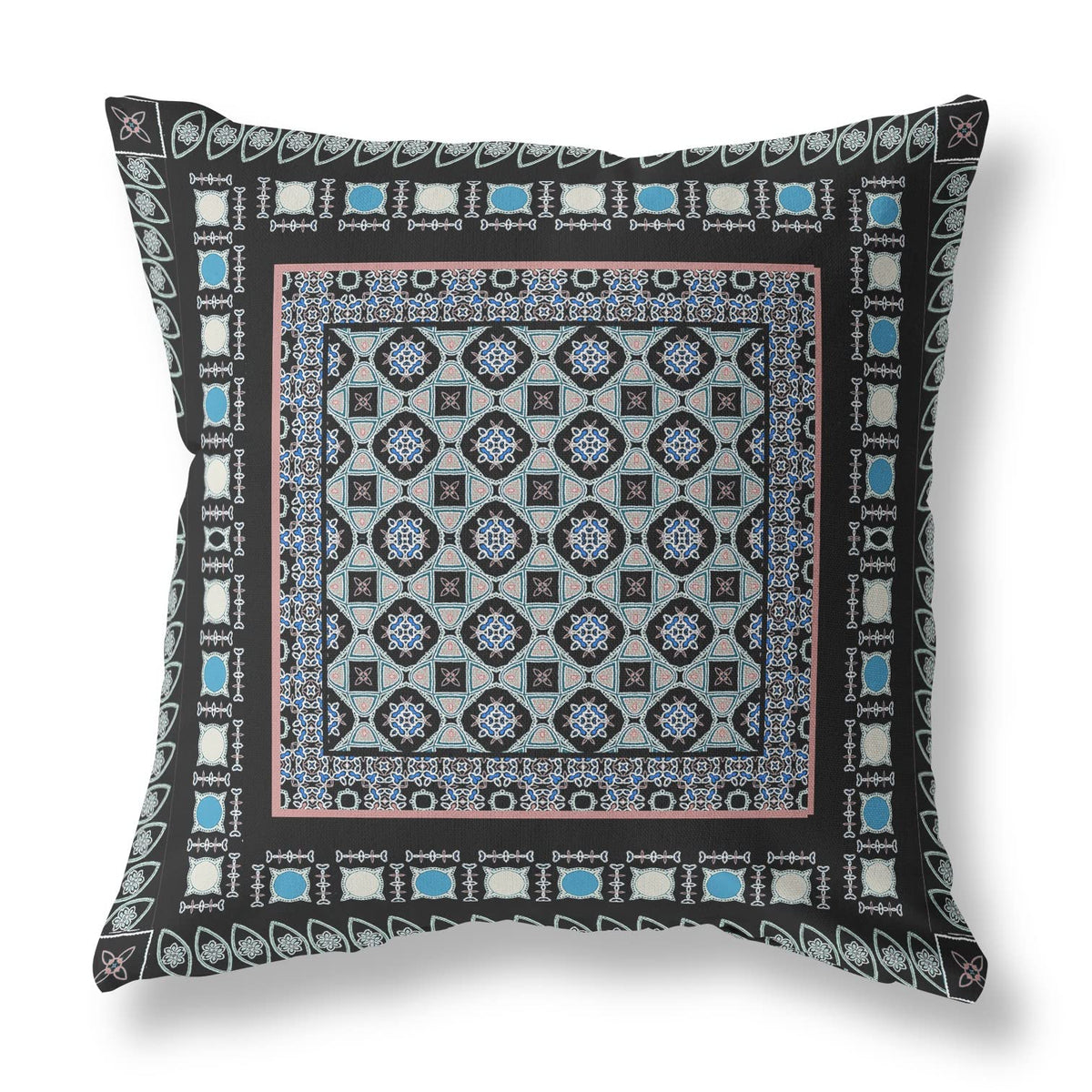 HomeRoots 28' X 28' Black and Blue Broadcloth Floral Throw Pillow