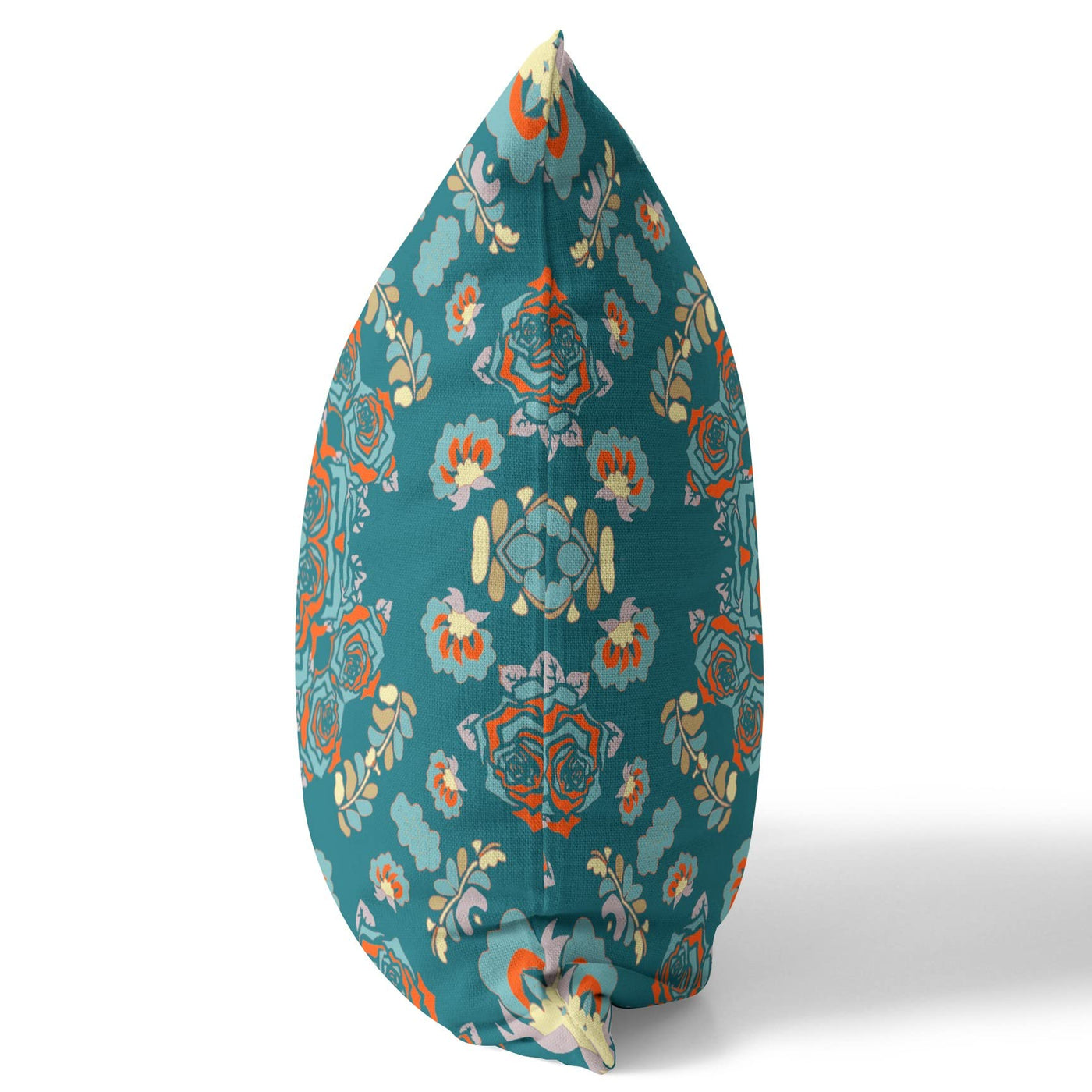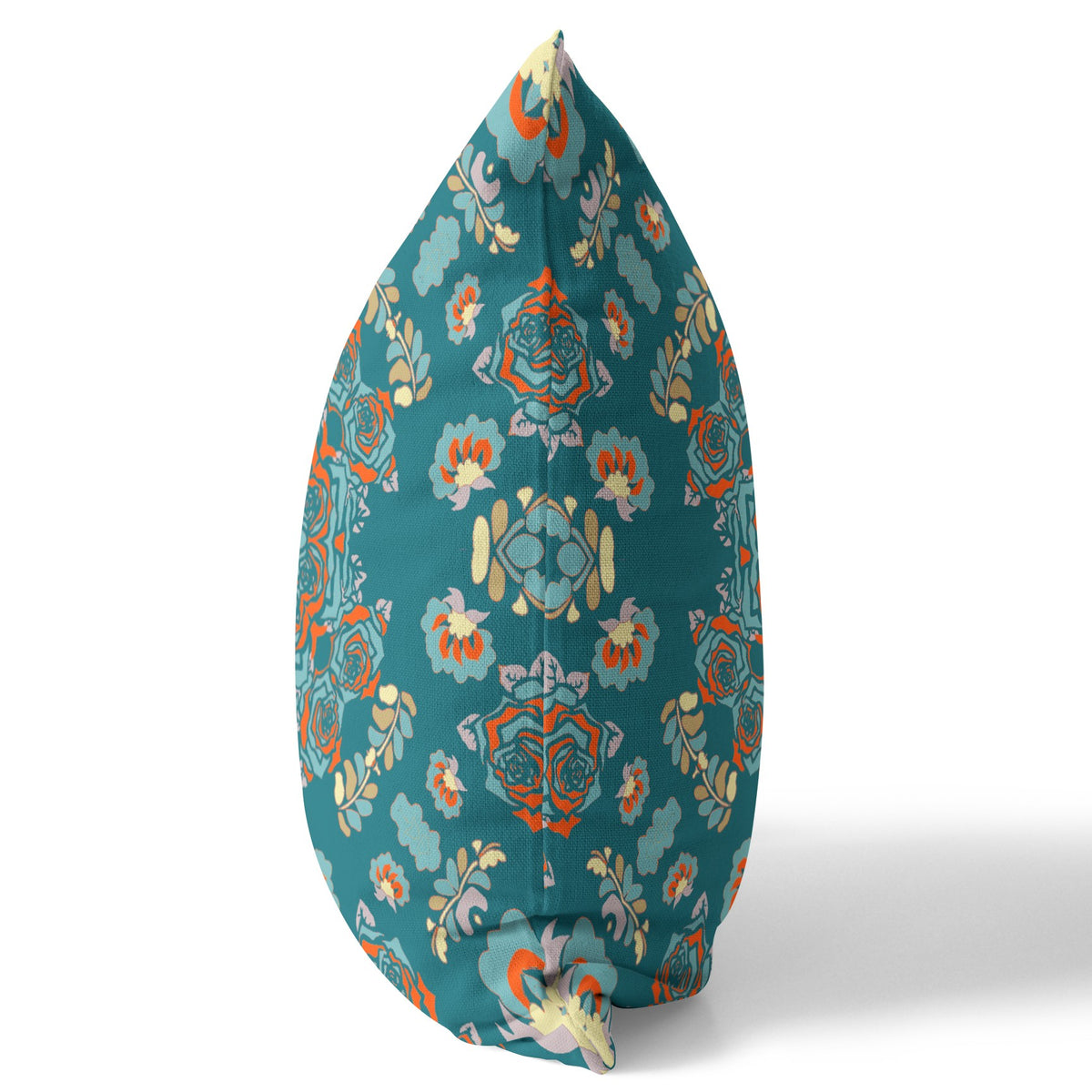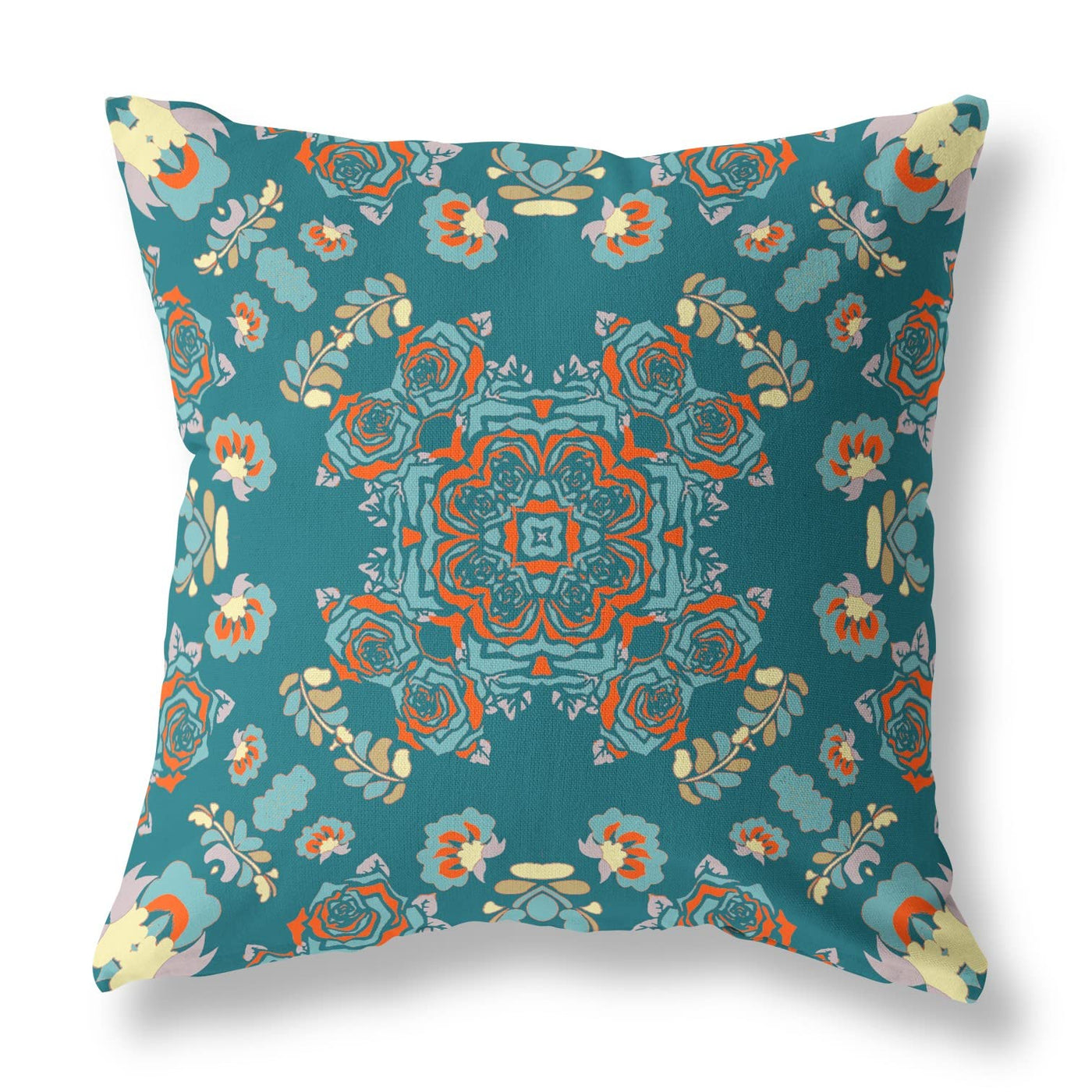 HomeRoots 28' X 28' Green and Red Broadcloth Floral Throw Pillow