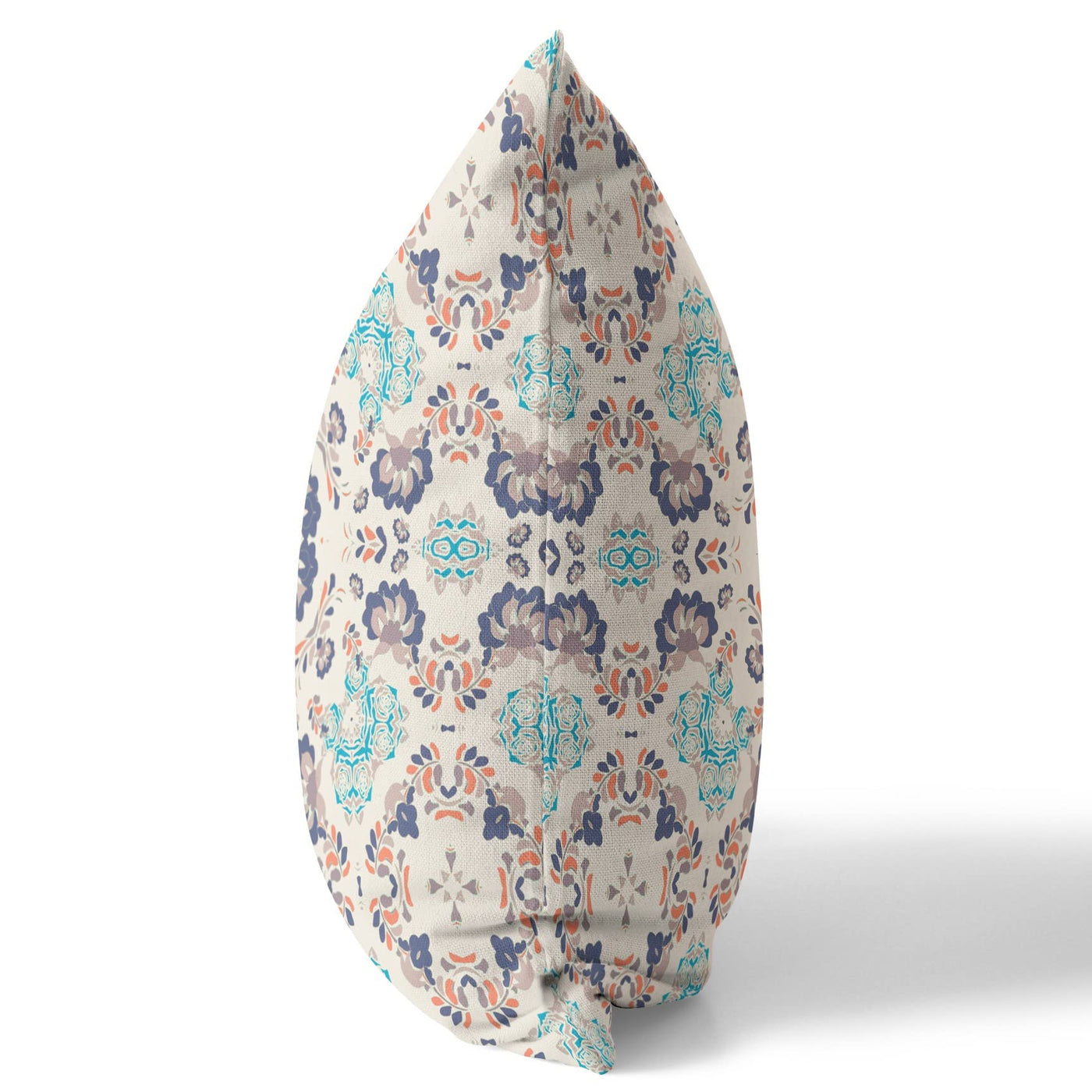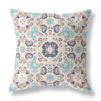 HomeRoots 28' X 28' Off White and Blue Broadcloth Floral Throw Pillow