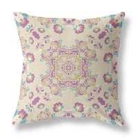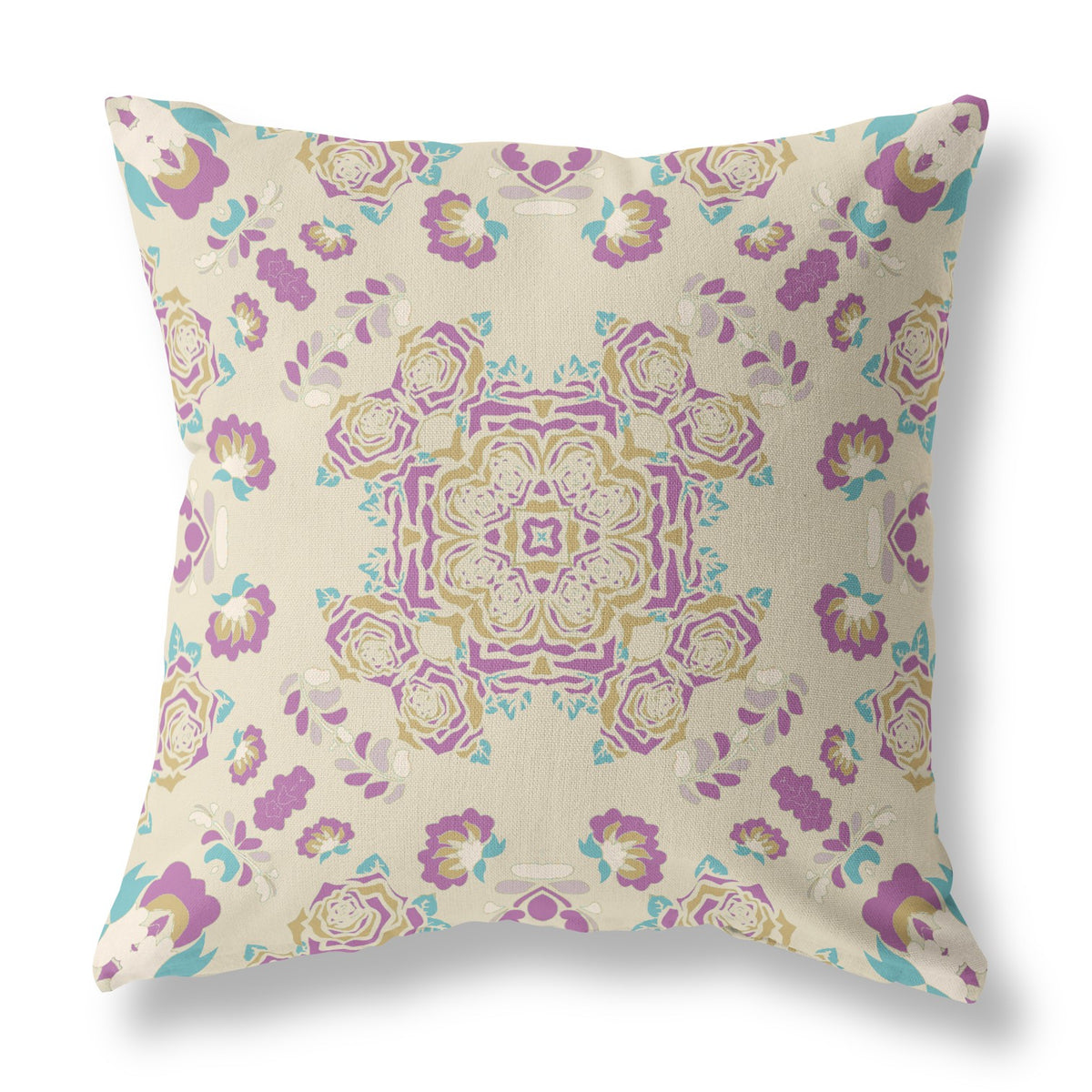 HomeRoots 28' X 28' Off White and Purple Broadcloth Floral Throw Pillow