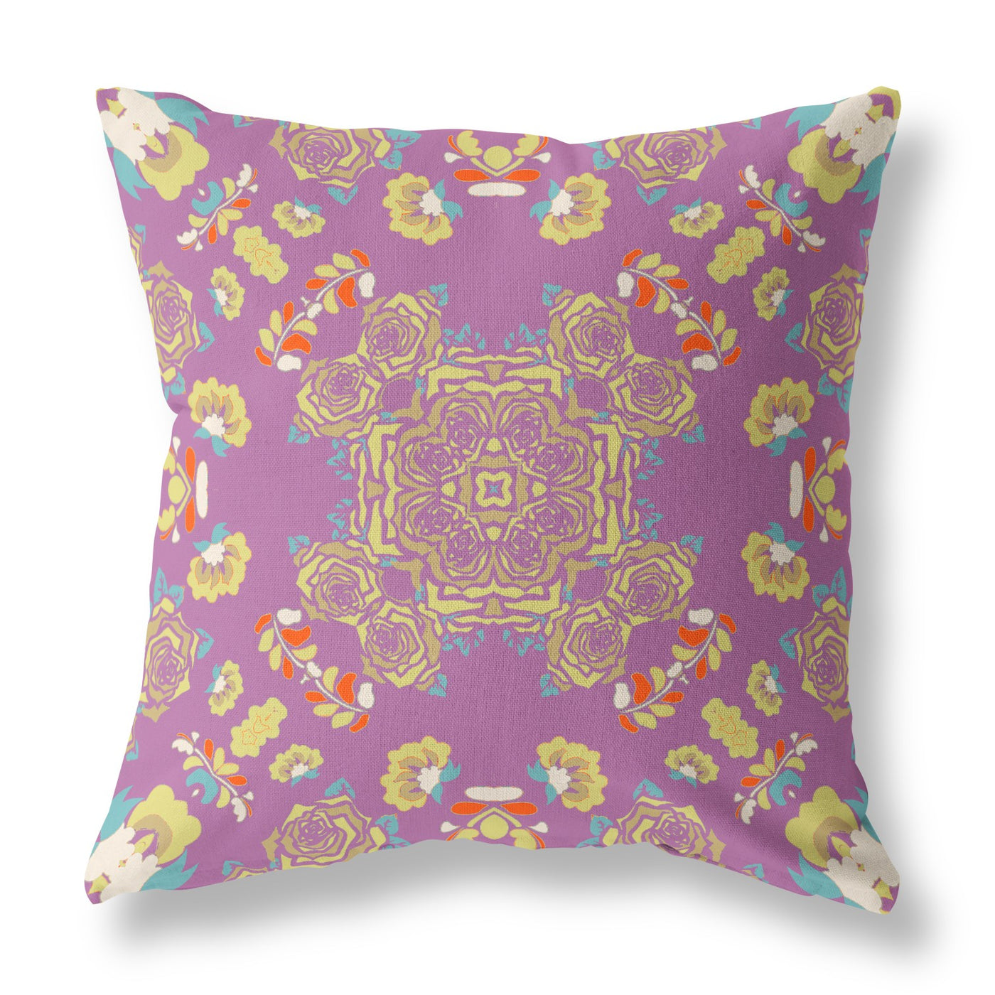 HomeRoots 28' X 28' Purple and Yellow Broadcloth Floral Throw Pillow