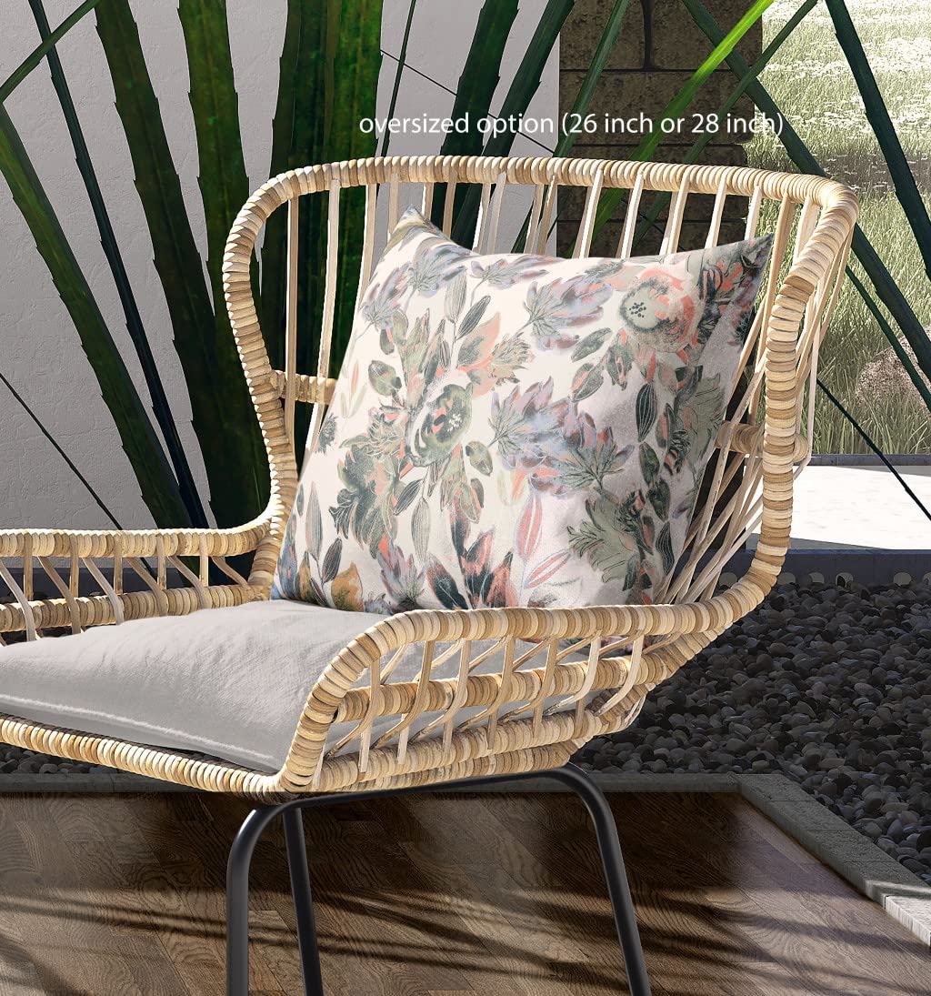HomeRoots 28' X 28' White, Pink and Grey Broadcloth Floral Throw Pillow