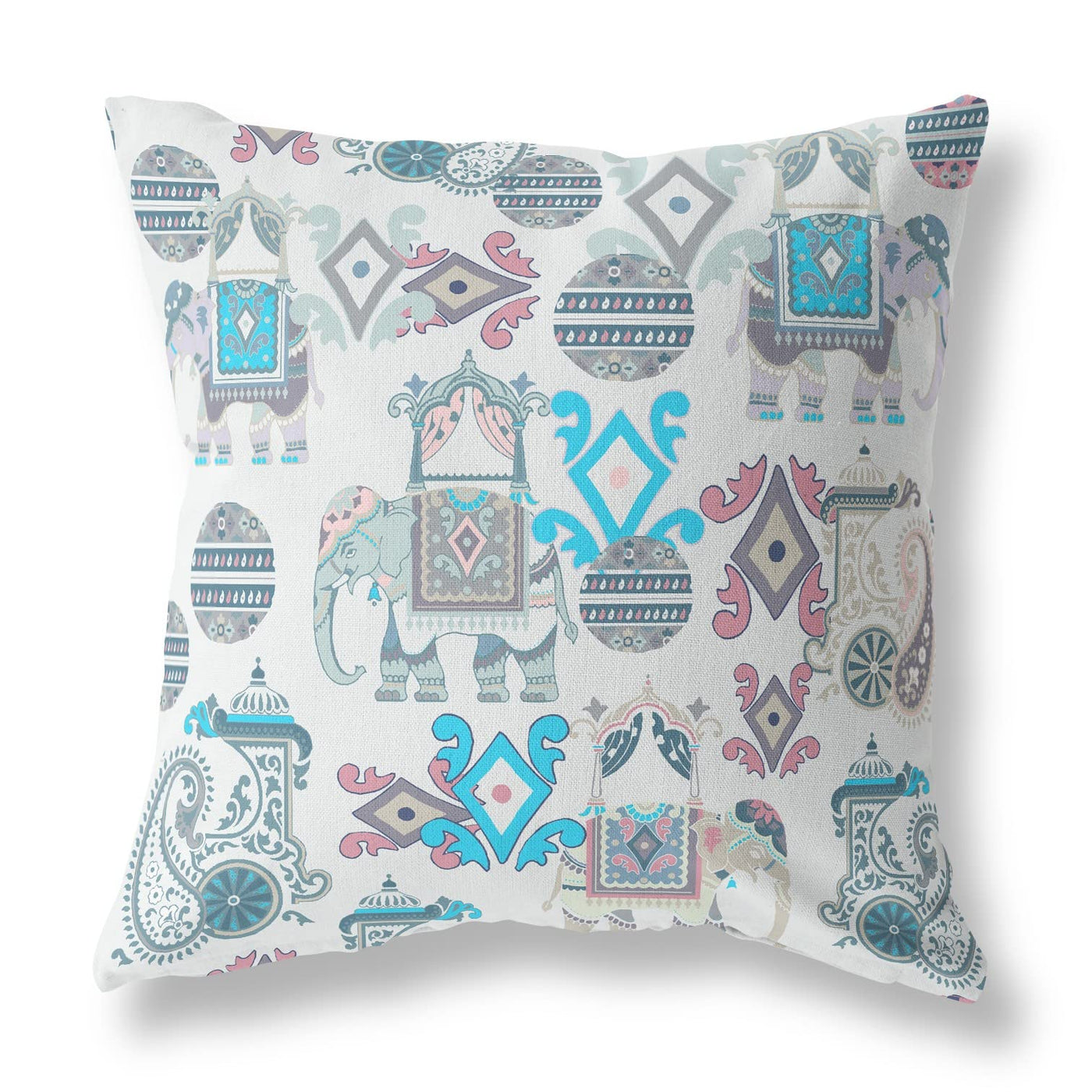 HomeRoots Beige and Blue 18' Aqua and Gray Elephant Scroll Blown Closed Broadcloth Throw Pillow