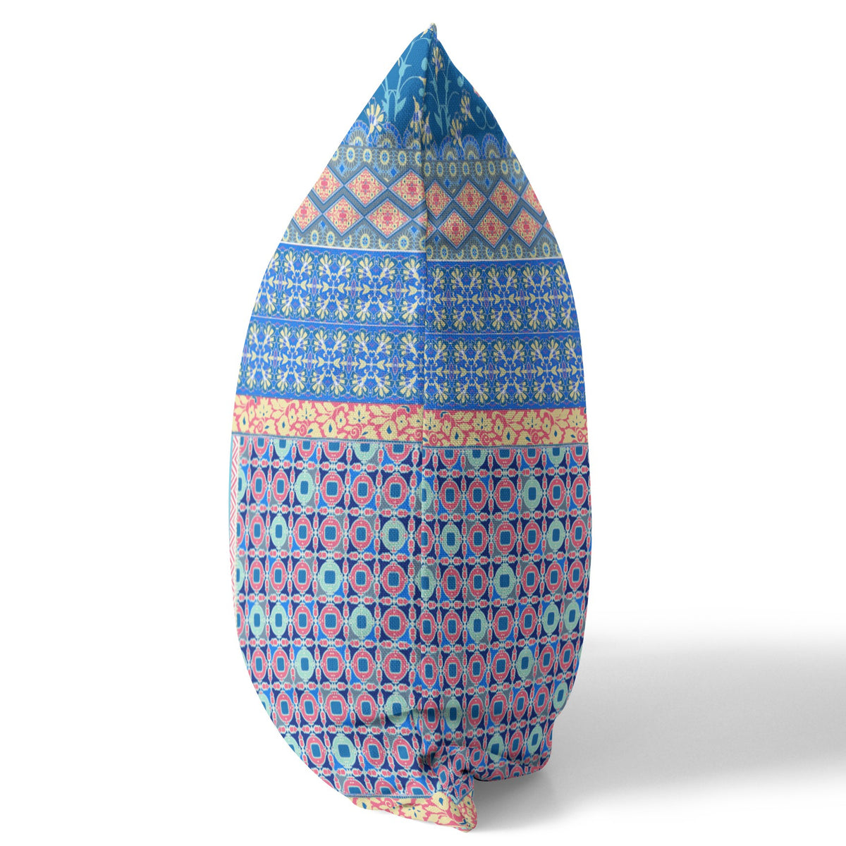HomeRoots Blue and Yellow Broadcloth 26†Blue Yellow Patch Indoor Outdoor Throw Pillow