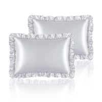 Hommxjf Silky Satin Ruffled Pillow Cases For Hair And Skin,Light Gray Silk Pillowcases Standard Set Of 2 With Envelope Closure P
