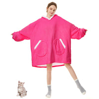 Hot Pink Wearable Blanket With Plush Pockets, Oversized Sherpa Thick Warm Hoodie Blanket Big Sweatshirt, Gifts For Women Men Hot