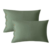 Jellymoni Pillowcases Standard Set Of 2 Cotton Button Pillow Covers 20 26In Green Bed Pillow Cases 100% Washed Cotton Soft Brea