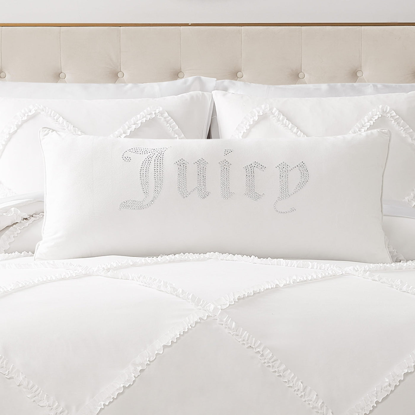 For A Pillow That Shimmers And Shines As Bright As You, Look No Further Than The Juicy Couture Hannah Velvet Decorative Pillow. This Soft Pillow Features The Juicy Couture Logo In Gothic Letters Using Sparkly Rhinestones Against Velvet. Includes (1) 16' X 36' Decorative Pillow. Easy Spot Clean. 100% Polyester. 100% Polyester Inserts. Imported.