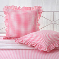K Masaniji 2 Pack Coral Pink White Plaid Ruffle Euro Shams Pillow Covers 26X26 Inches, 100% Cotton Gingham Checkered Farmhouse S