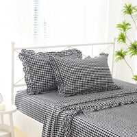 K Masaniji Black White Plaid Ruffle Sheets Twin Size 4-Piece Set, 300Tc 100% Yarn Dyed Cotton Sheets Deep Pocket Farmhouse Gingh